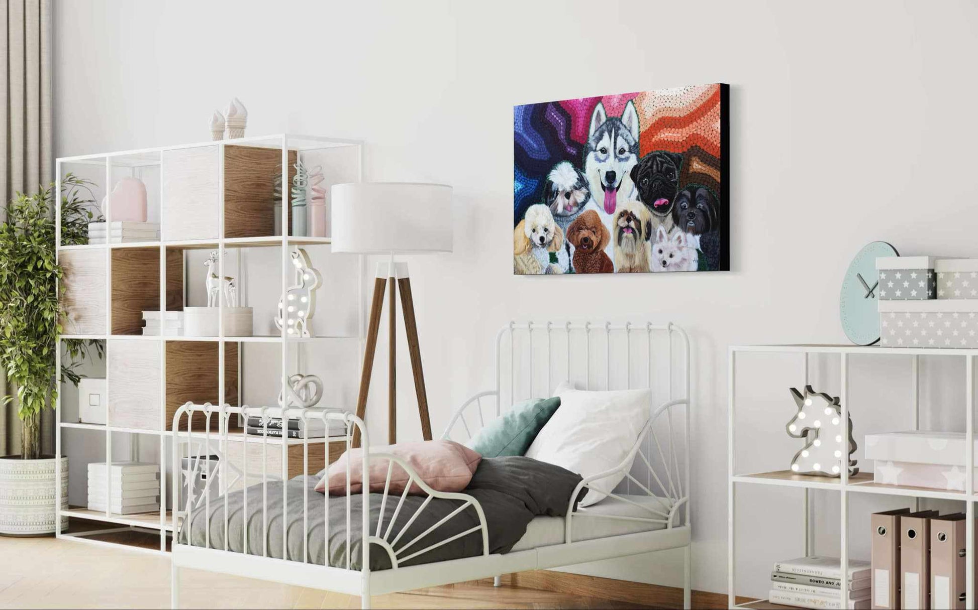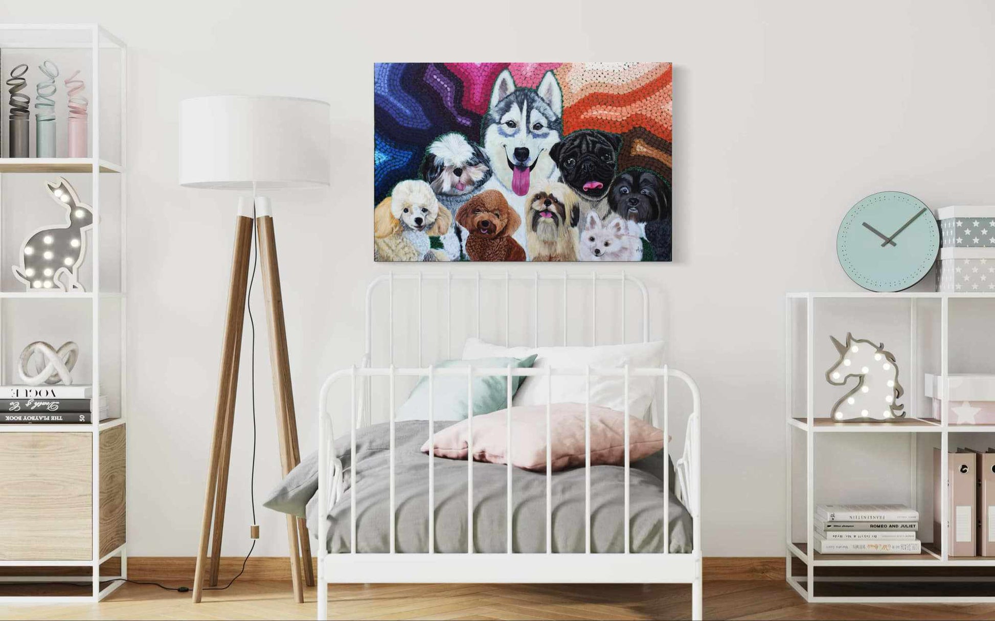 The artwork is available in high-quality prints on paper or canvas.
